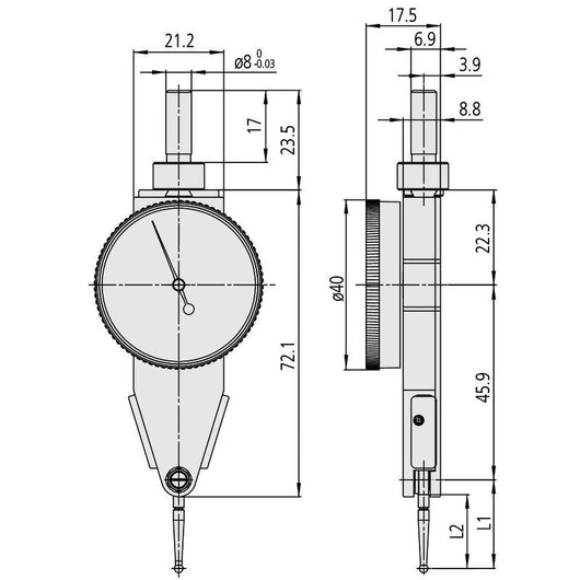 - Repeatability: ±.3µm, Graduation: 0-40-0